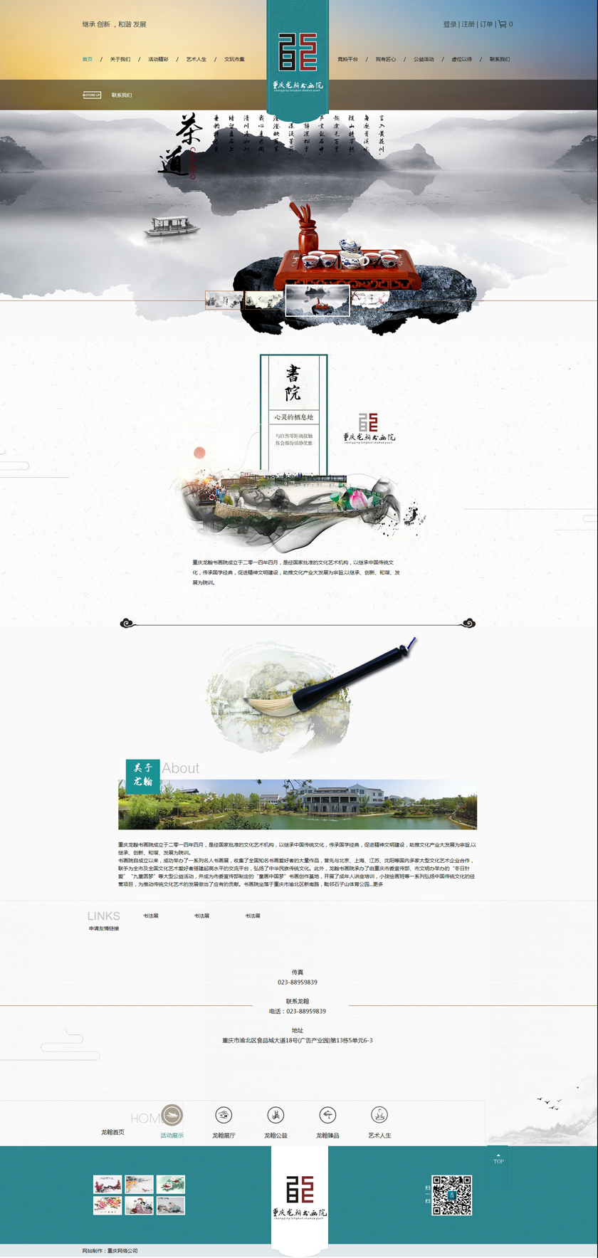 重庆龙翰书画院成立于二零一四年四月,是经国家文化部批准的文化艺术机构,在院长童泽光先生的带领下,以继承和弘扬 中华民族艺术瑰宝书画艺术、繁荣中华民族文化艺术,促进精神文明建设,助推文化产业大发展为宗旨,以继承、创新、和谐、发展为院训。