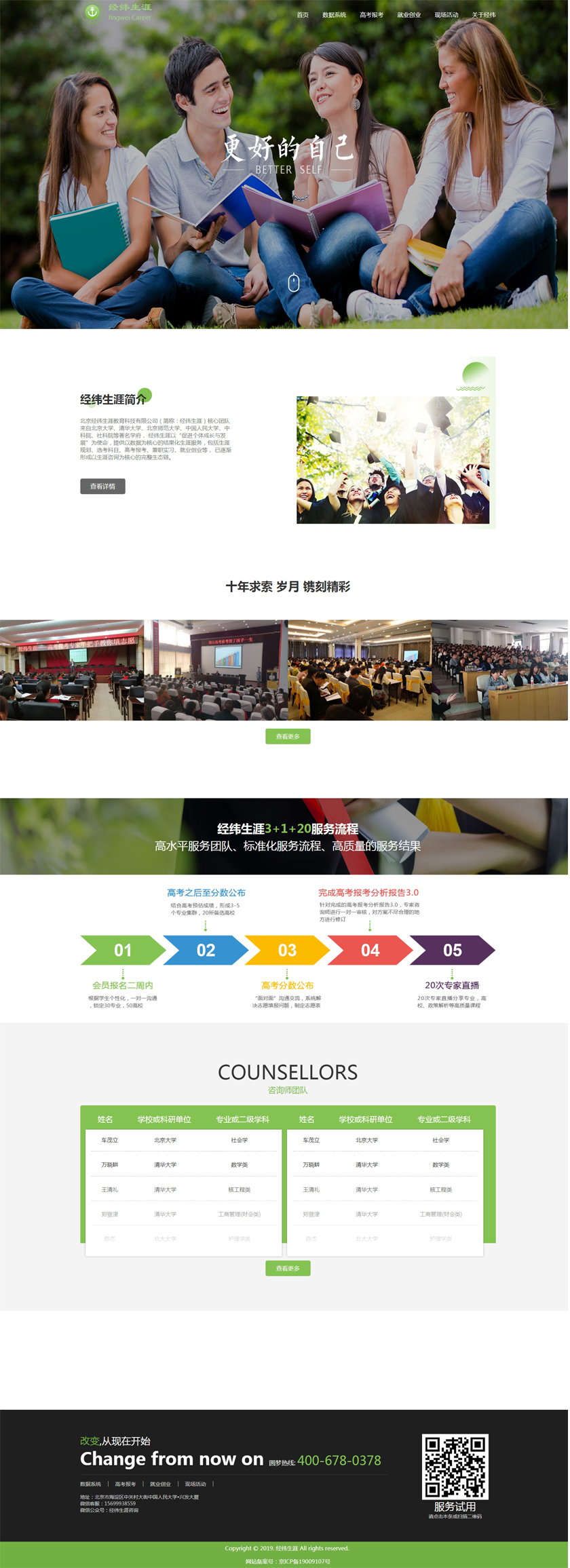 Project Description 北京经纬生涯教育科技有限公司(简称:经纬生涯)核心团队来自北京大学、清华大学、北京师范大学、中国人民大学、中科院、社科院等著名学府, 经纬生涯以“促进个体成长与发展”为使命,提供以数据为核心的结果化生涯服务,包括生涯规划、选考科目、高考报考、兼职实习、就业创业等, 已逐渐形成以生涯咨询为核心的完整生态链。 Official website address 江门http://www.jingweishengya.com/ I want to share