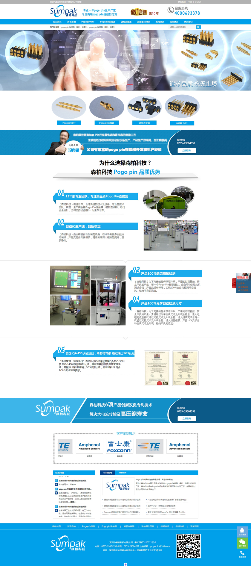 Project Description 深圳市森柏科技有限公司是专注高端pogo pin连接器、探针、弹簧针的制造厂家,森柏科技拥有Pogo Pin行业最先进和最可靠的制造工艺,主要制造过程均实现自动化设备生产,产品生产效率高,加工精度高,重要检测过程均采用自动化快速识别系统,大大降低了人为操作失误的风险,极大的提升了检测效率,工艺过程得到极大的改善和满足。因此产品质量和稳定性获得巨大突破。 Official website address 江门http://www.zgsumpak.com I want to share